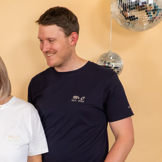 Mr Est Year Personalised Embroidered Wedding T-shirt