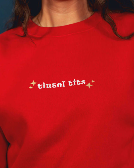 Embroidered Tinsel Tits Slogan Christmas Jumper