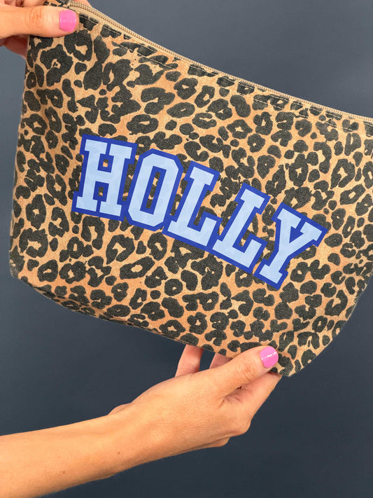 Personalised Slogan Leopard Print Makeup Bag