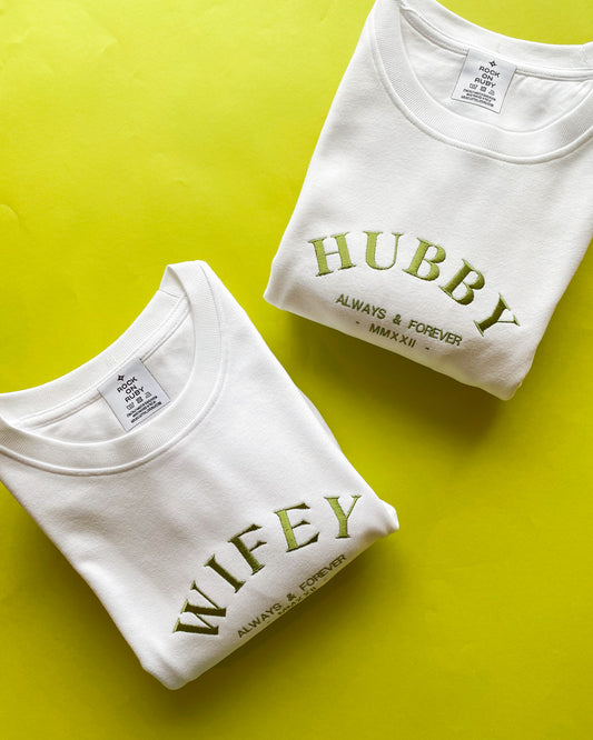 Embroidered Hubby Wifey Always Sweatshirt Set