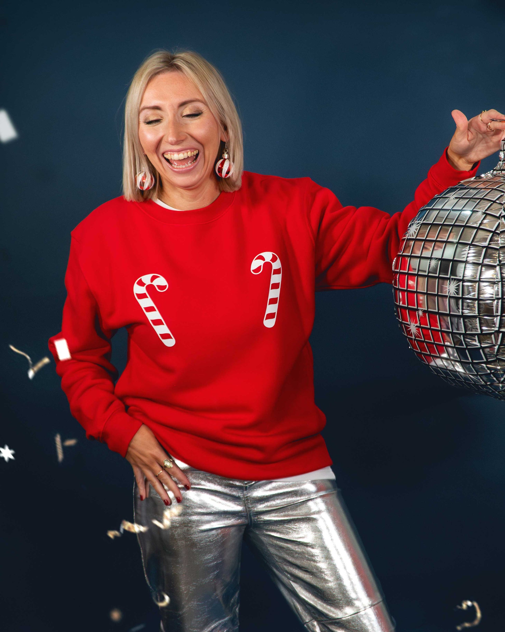 Give your Christmas Wardrobe a fun, sassy makeover with this printed candy cane sweatshirt.