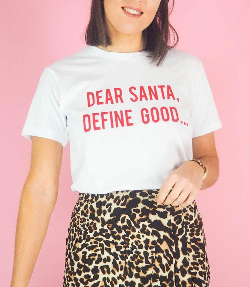 Have we been good this year? We're going to need some clarification on that one...Get a little bit sassy this season, with our festive slogan tee!
