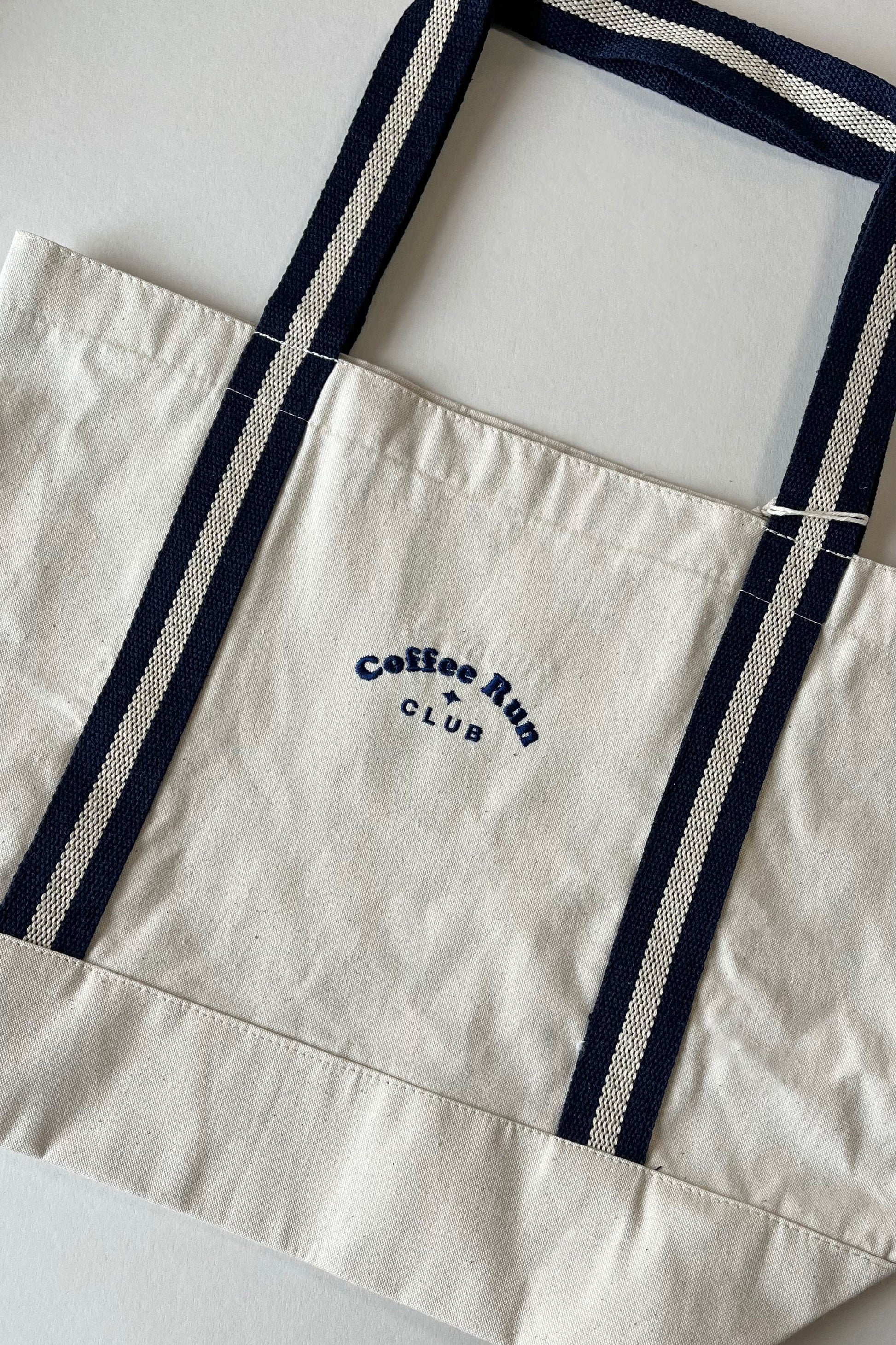 This large boat bag is embroidered to order with the slogan "Coffee Run Club - making it the perfect gift for the coffee lover in your life. Plus, it's available in 2 different colours to suit their style!