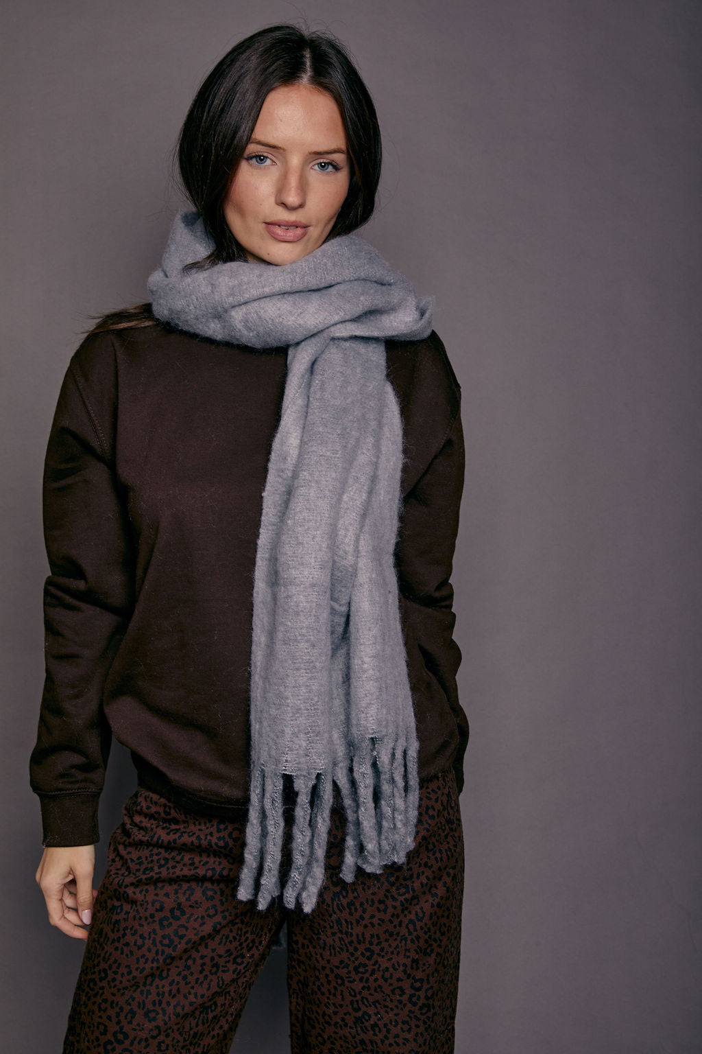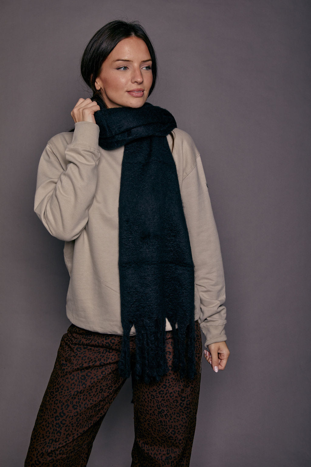 🧣 Fluffy, Oversized & Seriously Soft – Made from 100% recycled polyester, this scarf is super soft, extra warm, and finished with classic tassels at each end for that perfect winter-ready look.