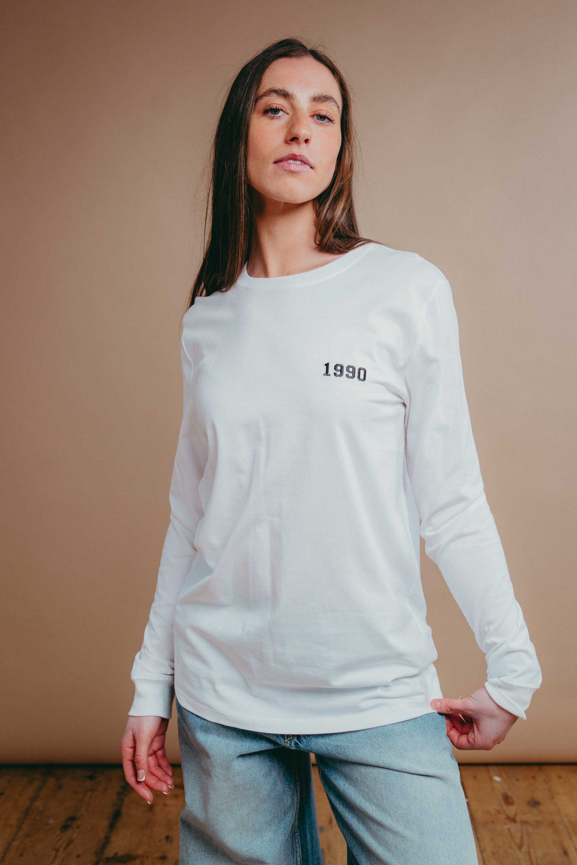 This embroidered top is personalised with the year of your choice and embroidered to order just for you! This long sleeve tee is ethically made form 100% organic cotton and has an oversized, unisex fit.