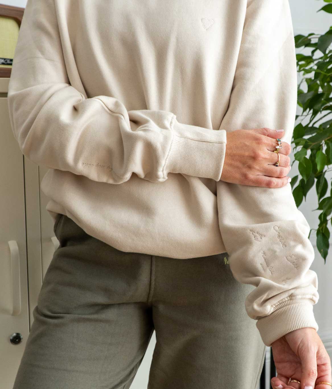 This sweatshirt will make a super personal gift for any occasion, but particularly for a Bride to Be... Have all your bridesmaids write their name and we can embroider them on the sleeve for you to keep close to you on the morning of your wedding. The perfect outfit to get ready in on the morning of your big day!