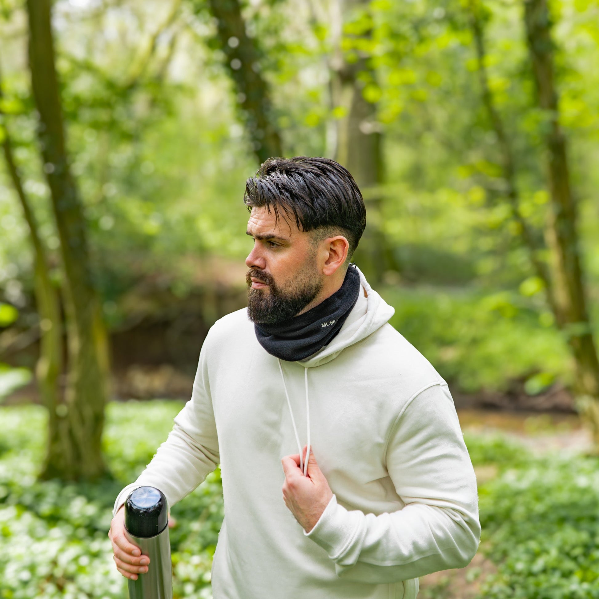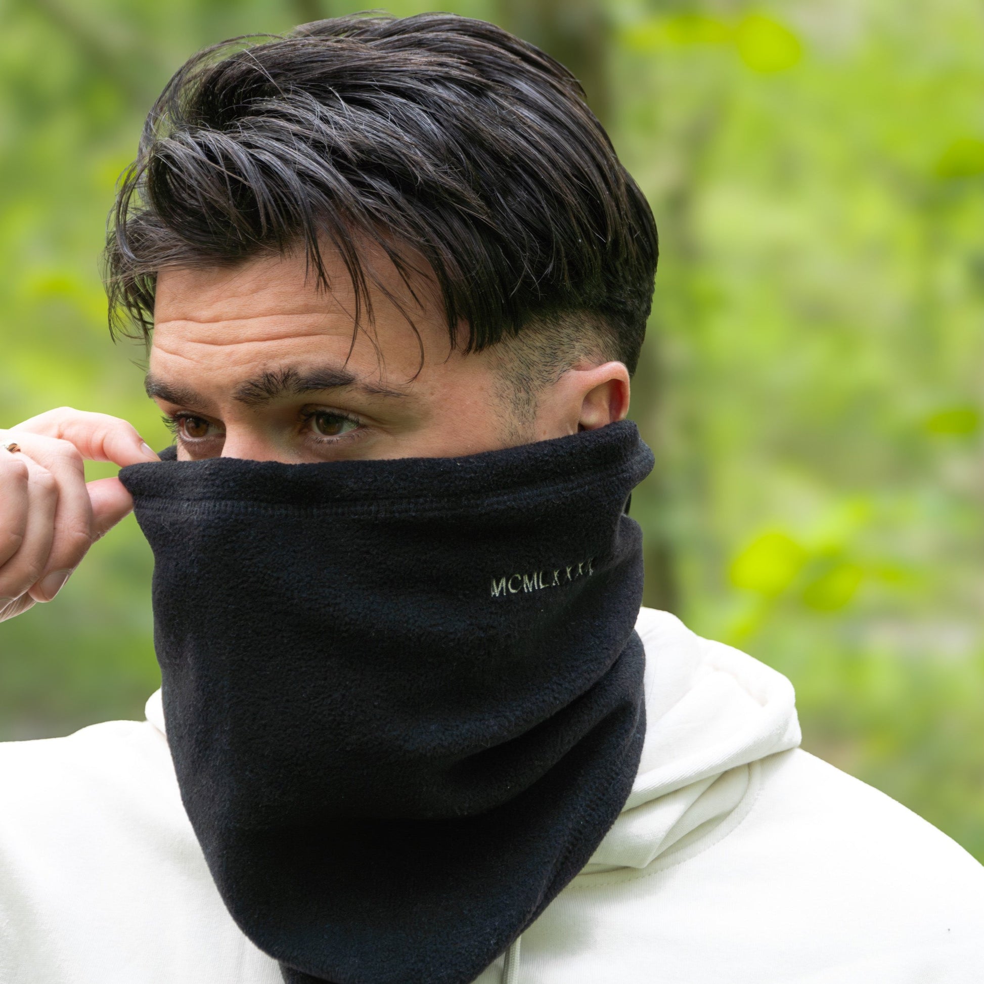This cosy snood is made from 100% polyester. Unisex style. Jack is wearing the Black snood - temporarily out of stock x
