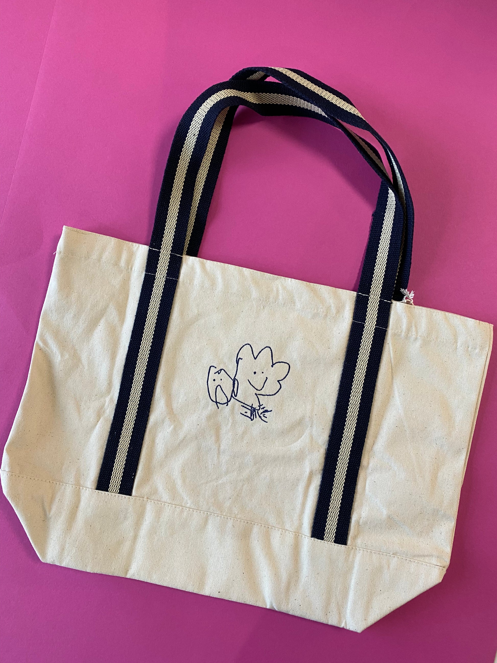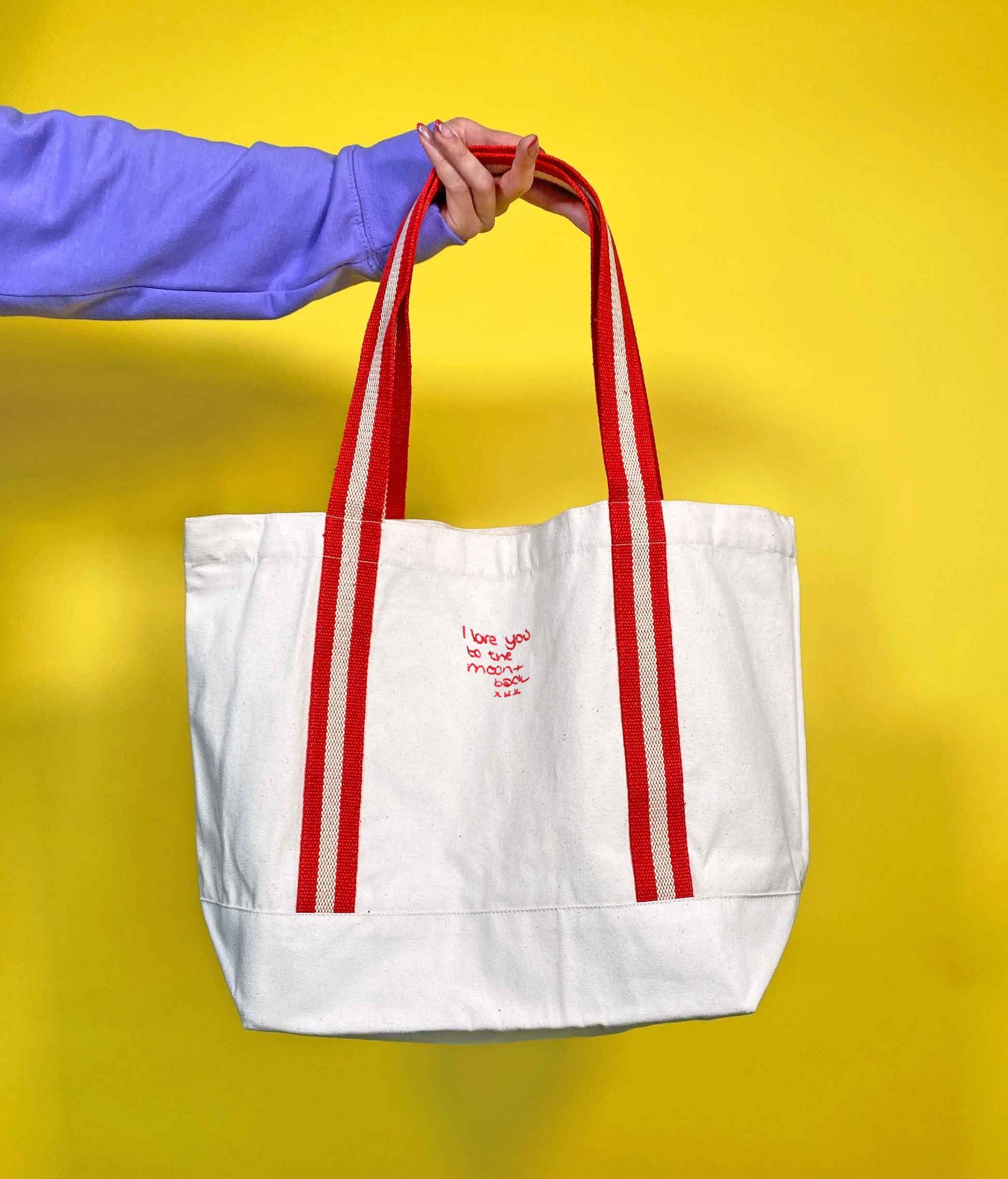 This large boat bag is embroidered to order with your very own handwriting or doodle. Plus, it's available in 4 different colours to suit anyone's style.