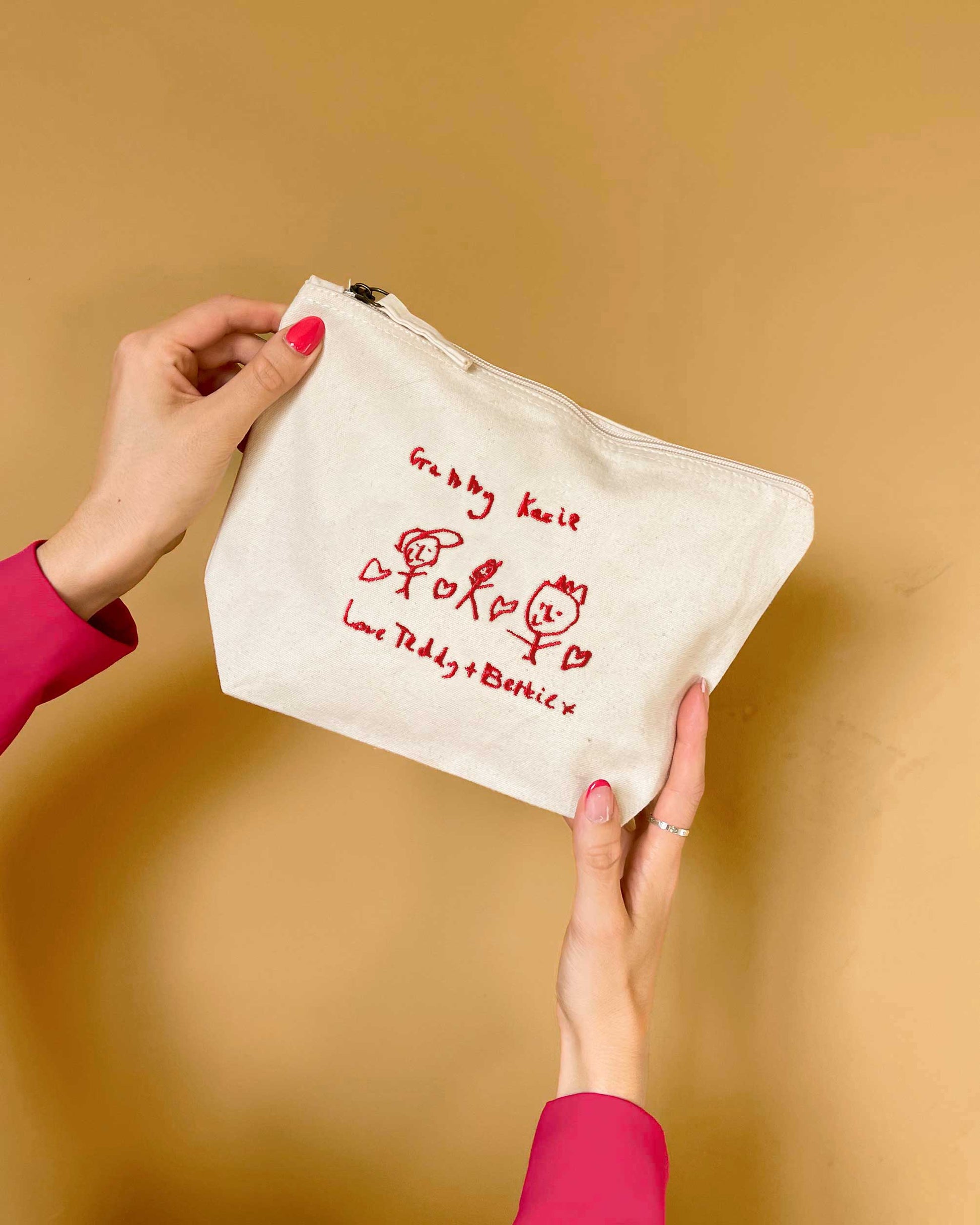 Each bag is embroidered to order with your very own handwriting or doodle - the perfect gift!