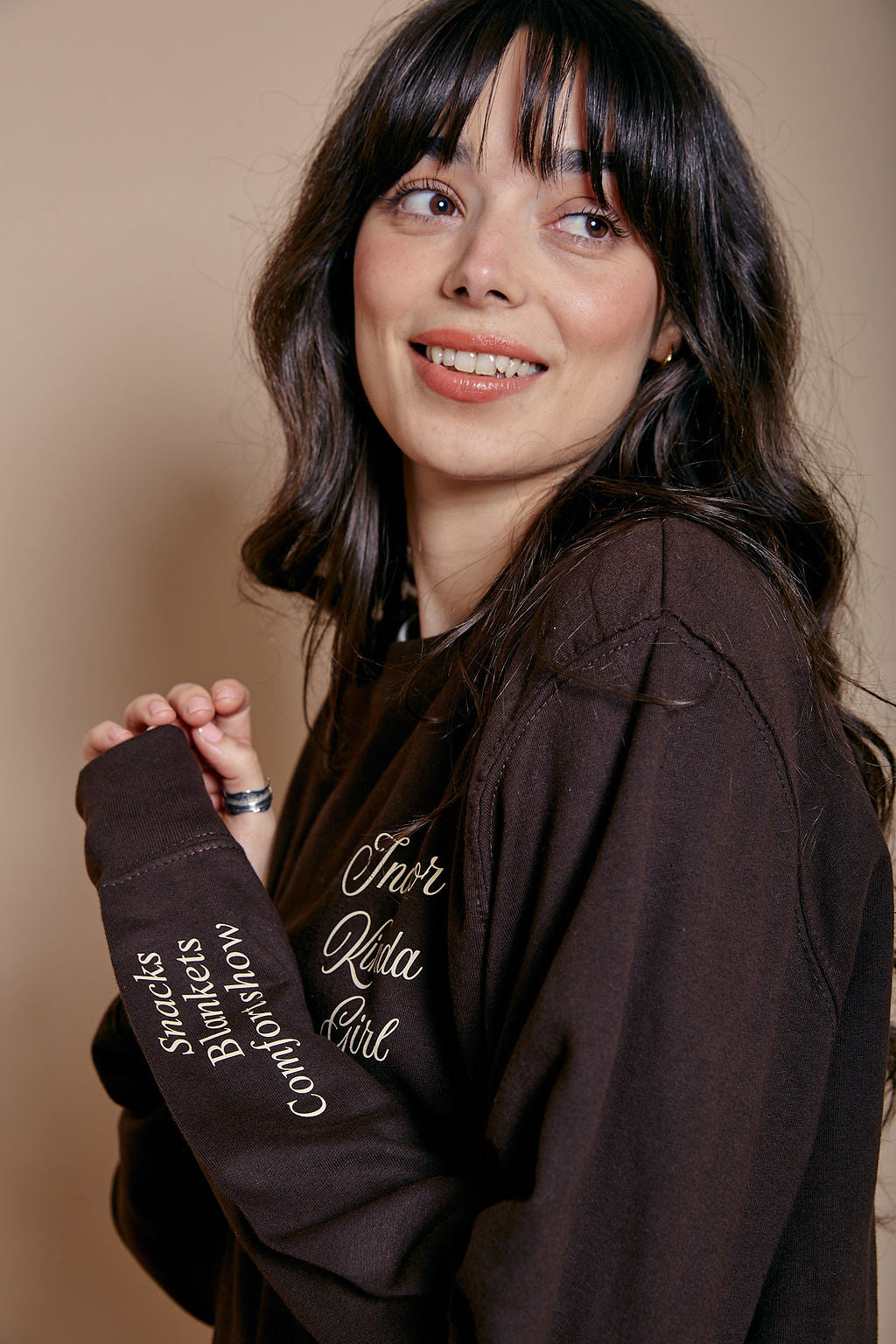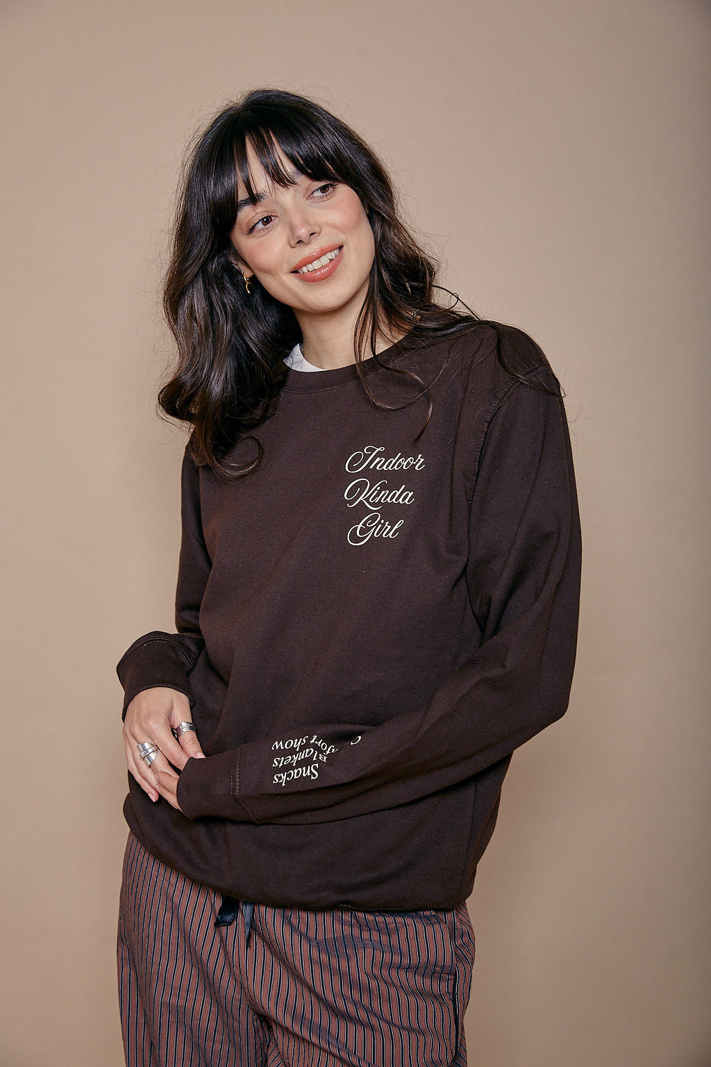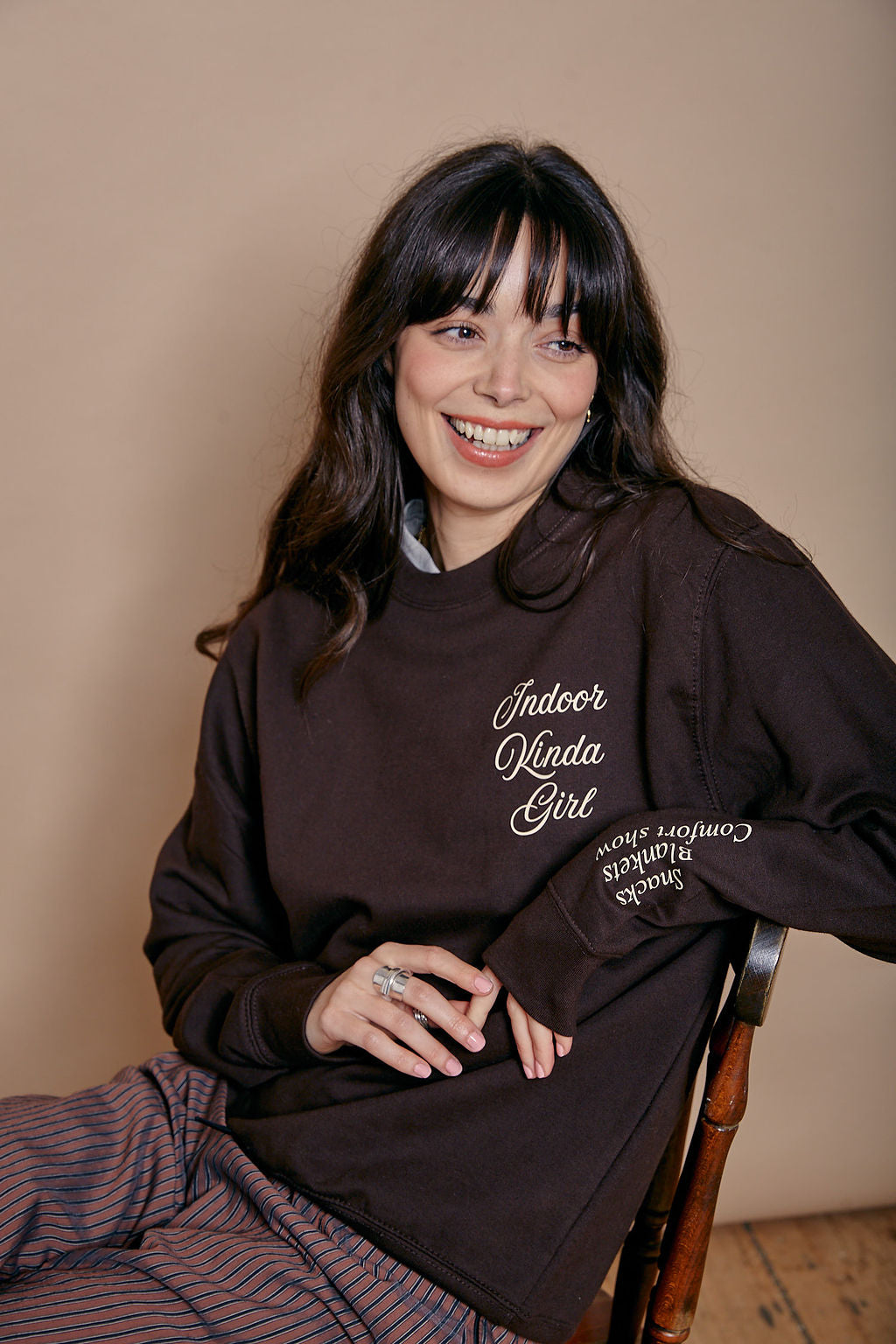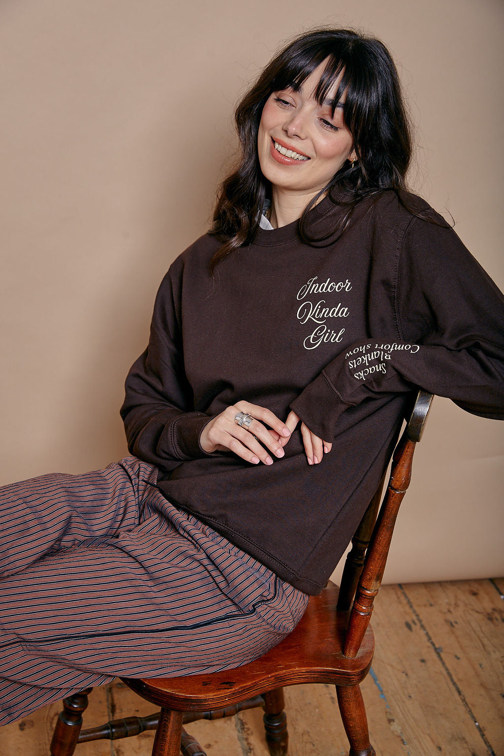 Forget going outdoors when it's cold and rainy... This A/W staying in is the new going out! Cosy up in this luxe chocolate brown sweatshirt.