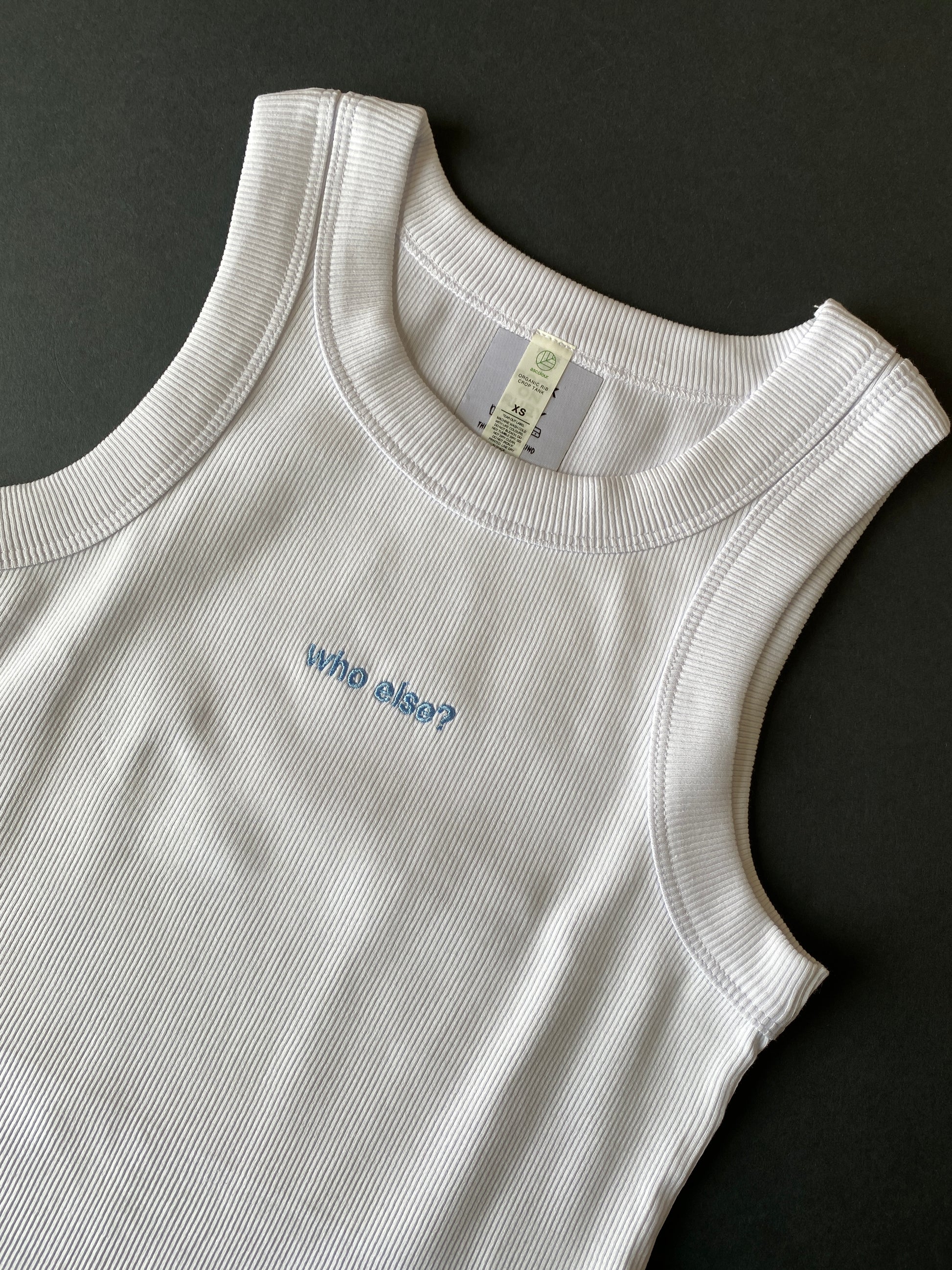 Write your own mini slogan on a ribbed vest top to wear out this summer. Could also be worn underneath a top to add another layer.
