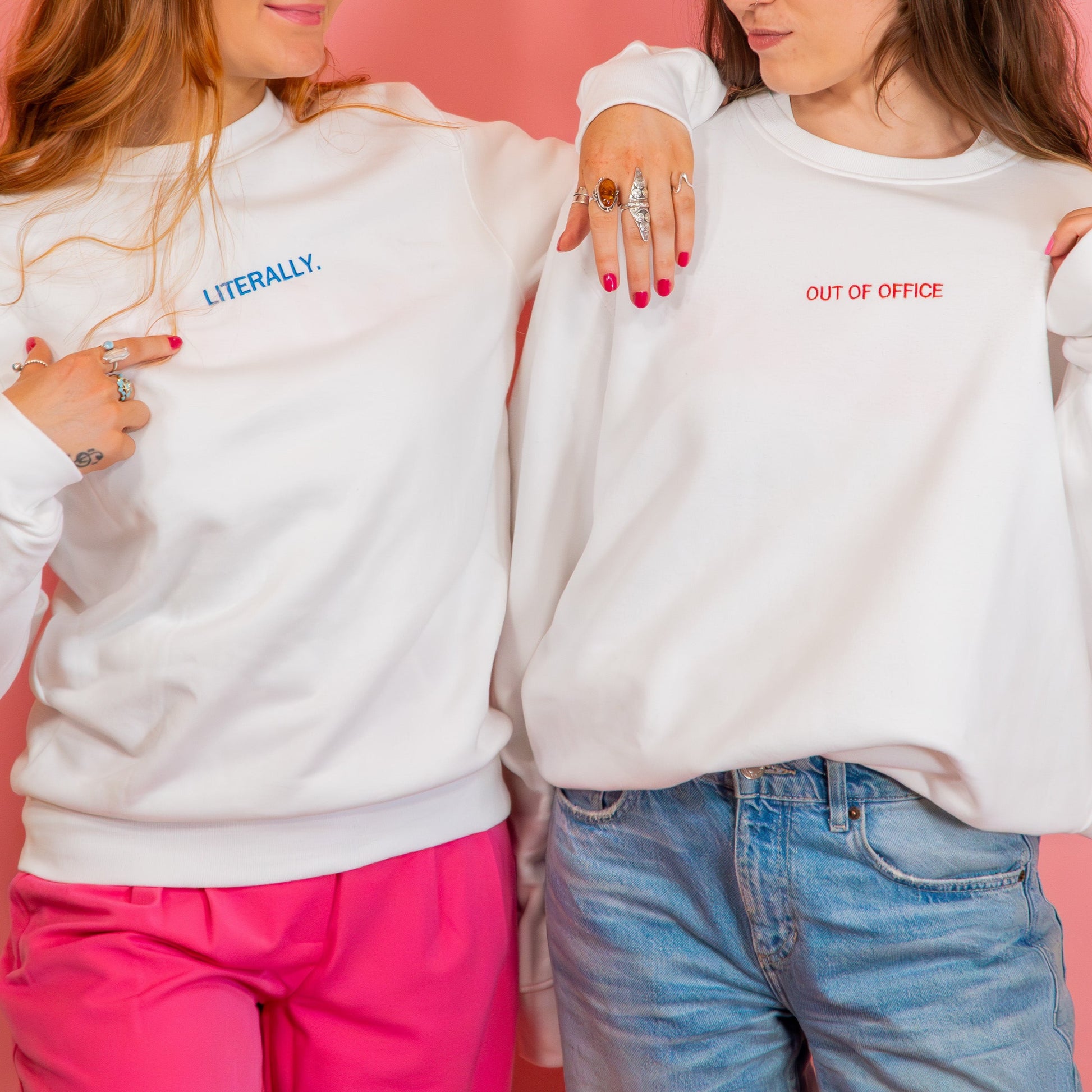 What is that one go to phrase that you & your besties use all the time?! Create your very own embroidered customised sweatshirt with your own slogan...