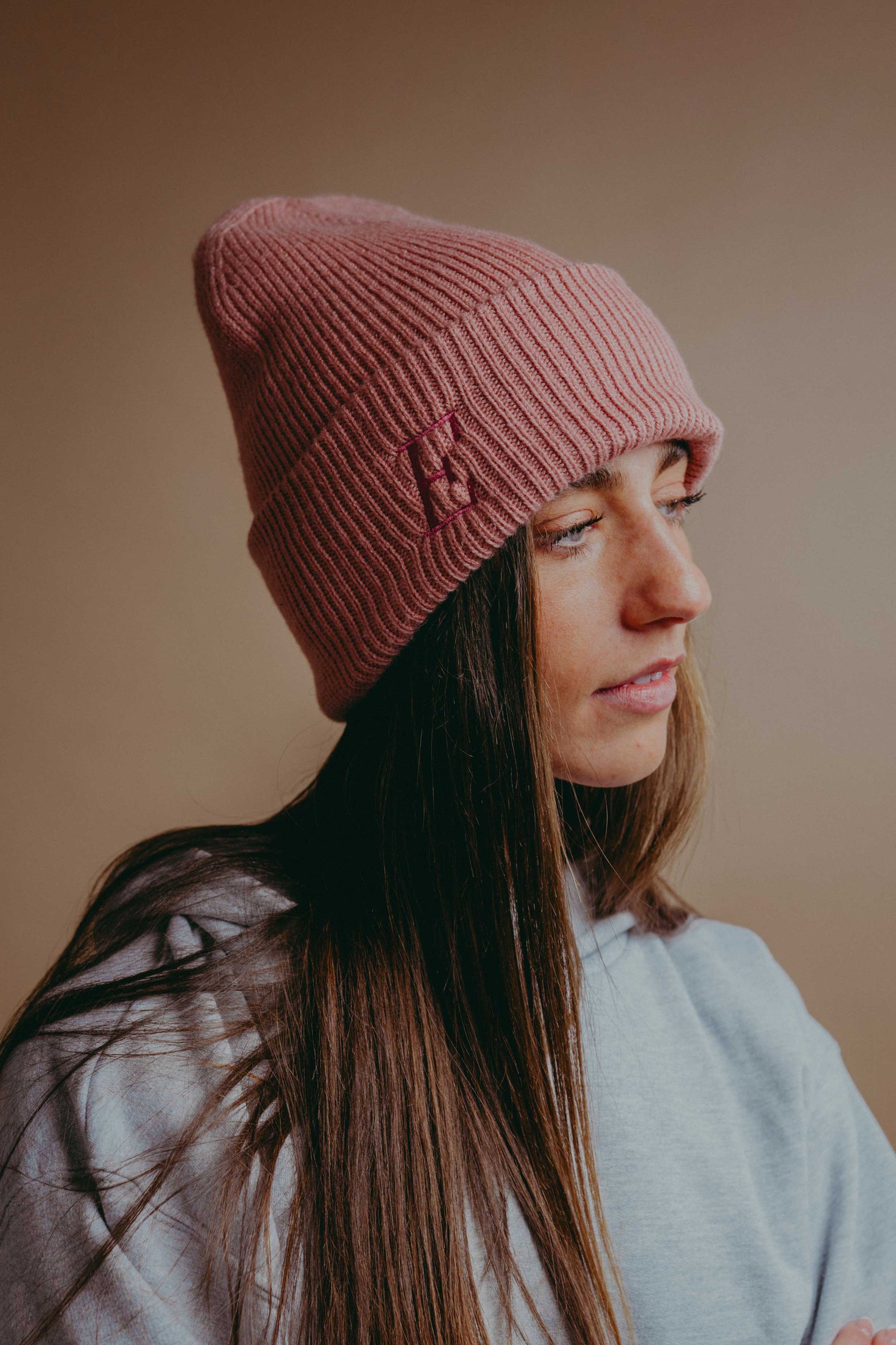 Show in Dusky Pink hat with matching Dusky Pink thread and Stone hat with Black thread.