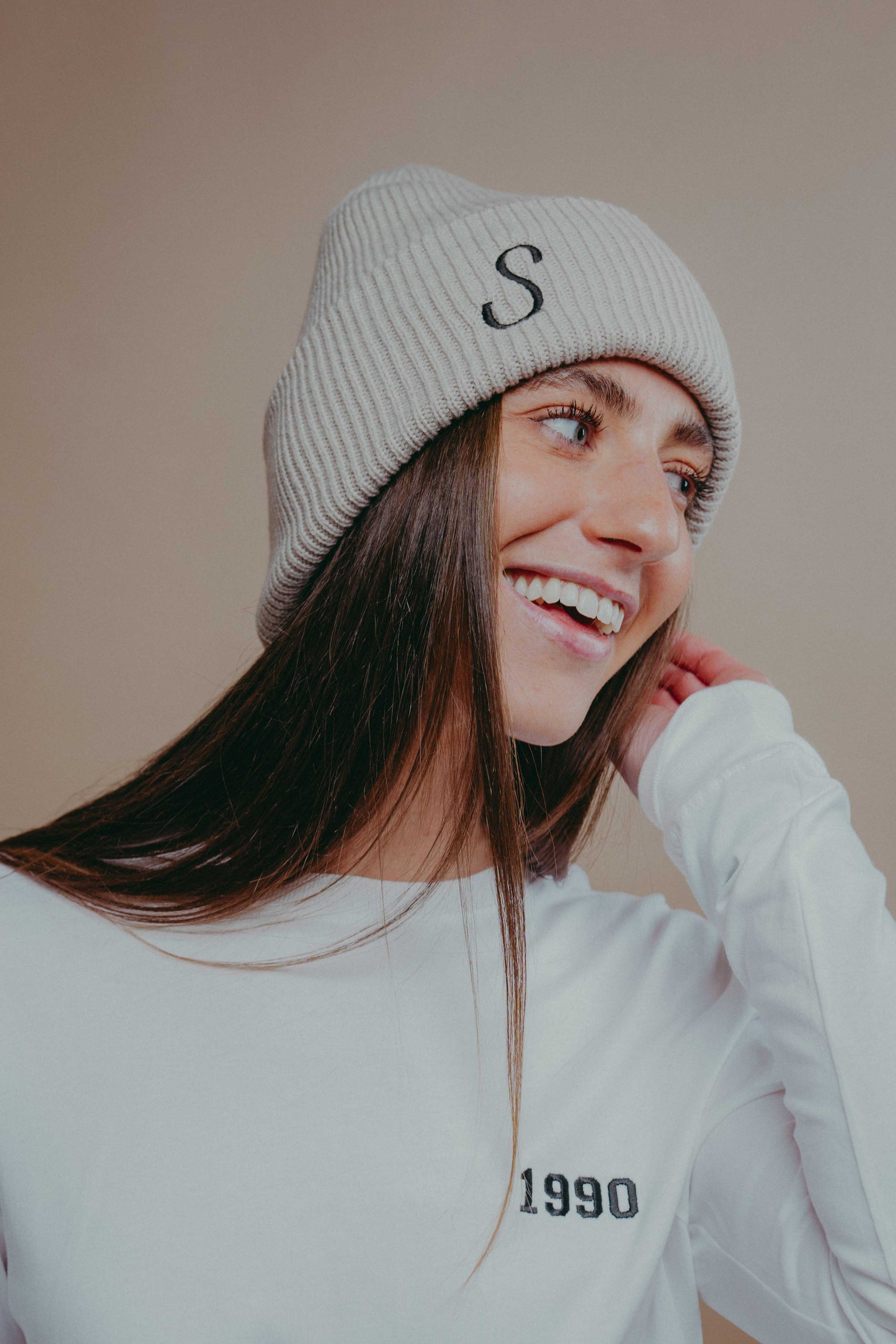 Rock your initial in Serif style with a customised, embroidered beanie hat!