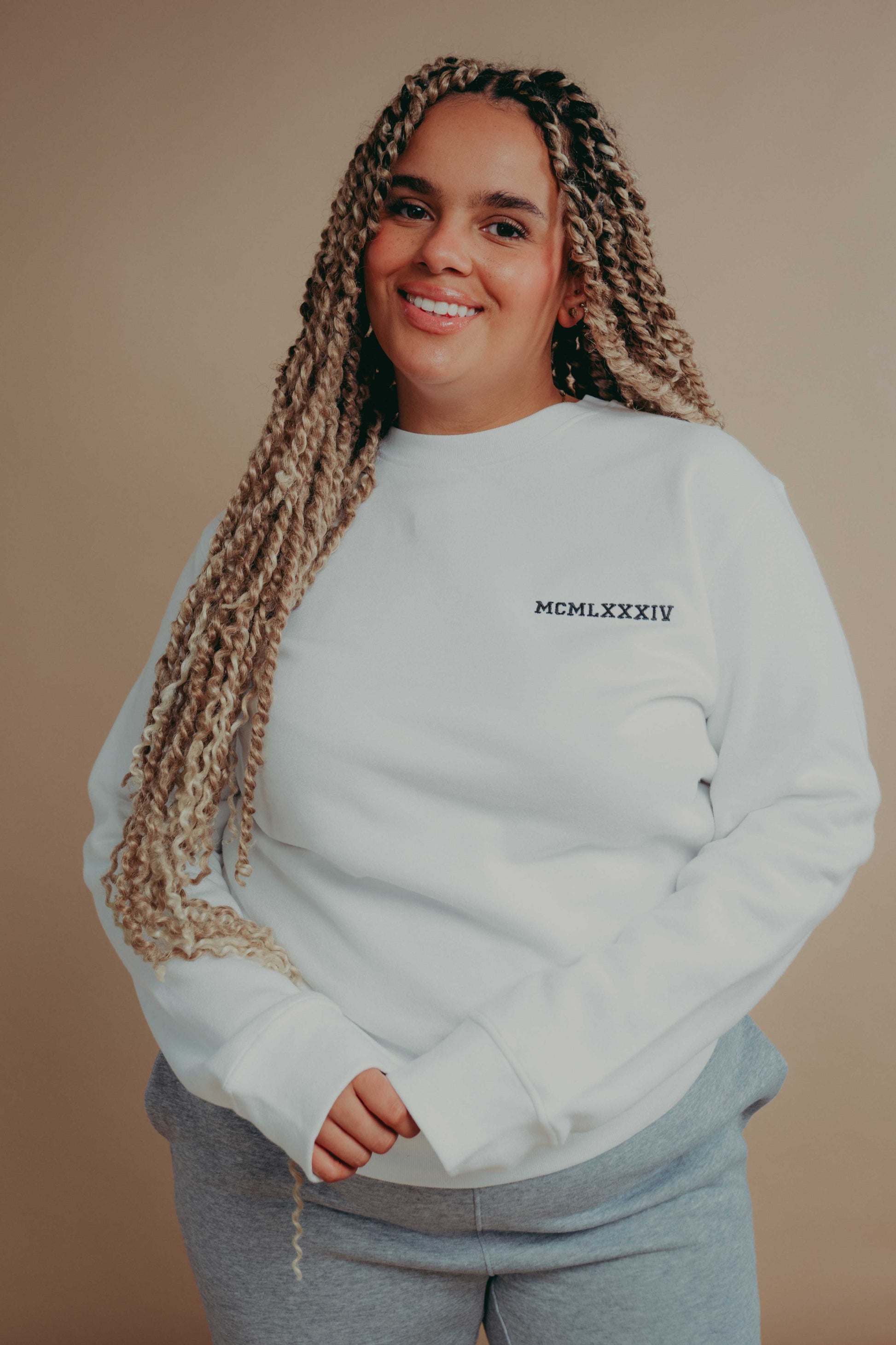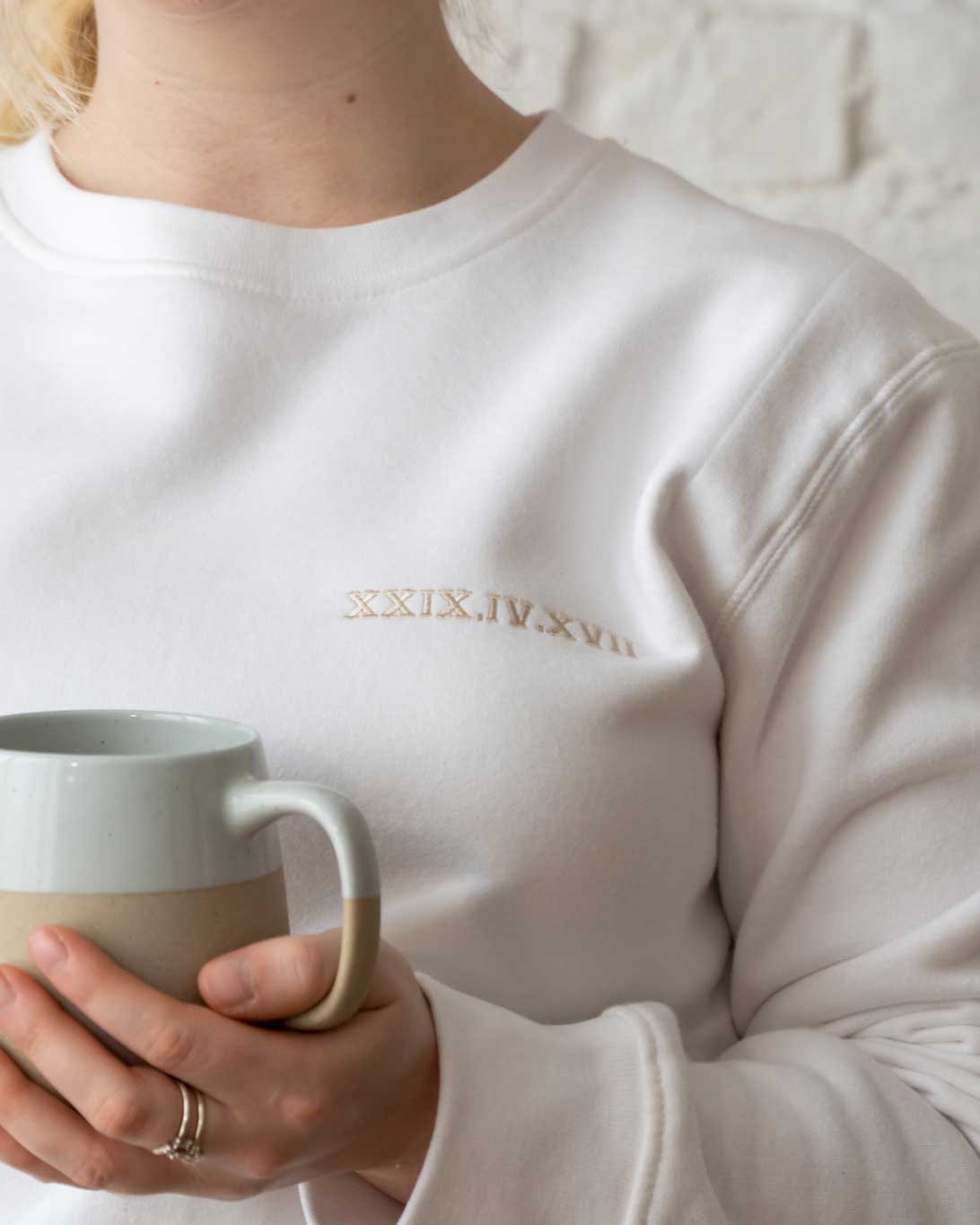 If you've got a special date, our embroidered roman numerals year sweatshirt is the perfect personal gift!