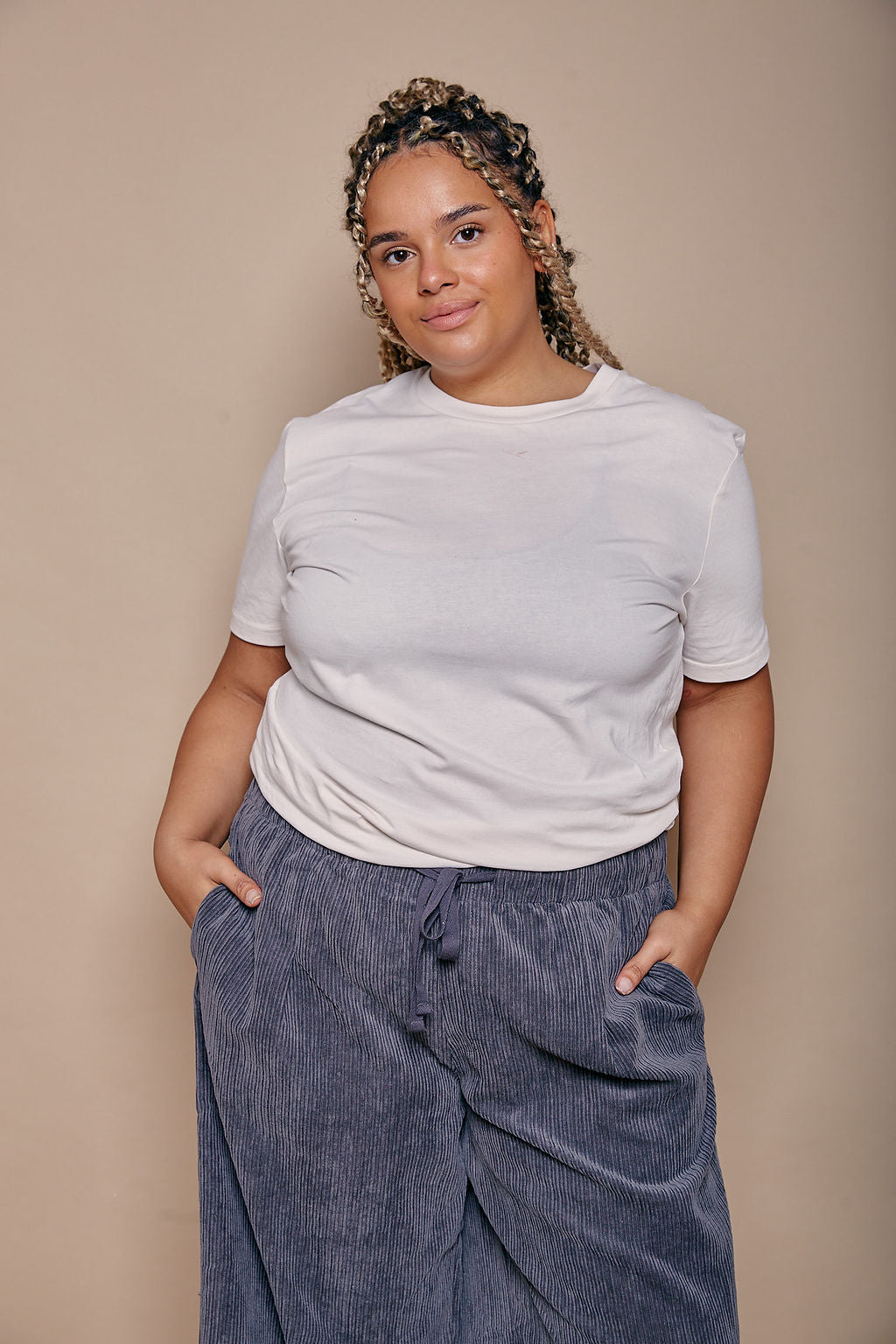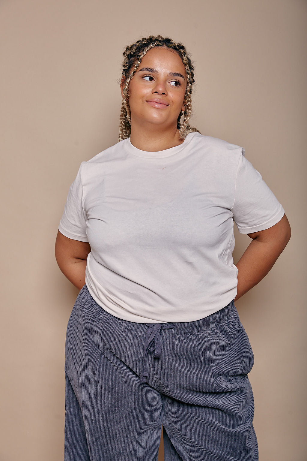 Hannah is 5'4" and is wearing the L as an oversized fit.